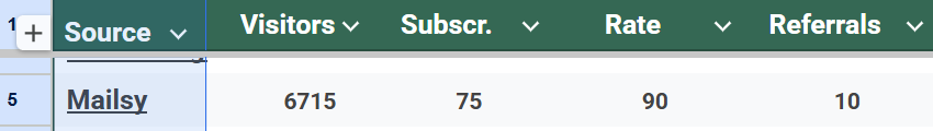 It converts at a rate of 90 visitors per subscriber.This data is based on 6,715 visitors from the site, which resulted in 75 subscribers to the Hour-by-Hour funnel and 10 referrals to Herculist