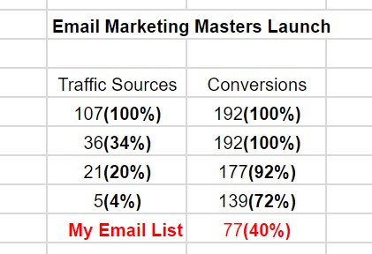 If I used just my Email List I would get 77 signups or 40% of all results.